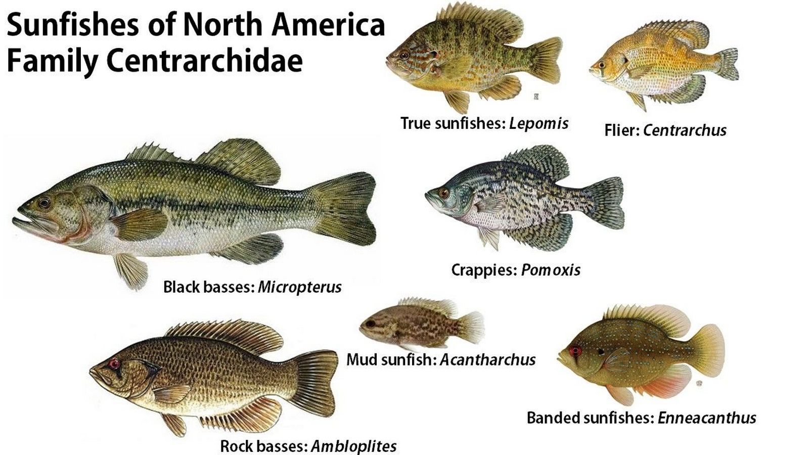 Лучепёрые рыбы — Северная Америка (North America) — Actinopterygii Klein, 1885.