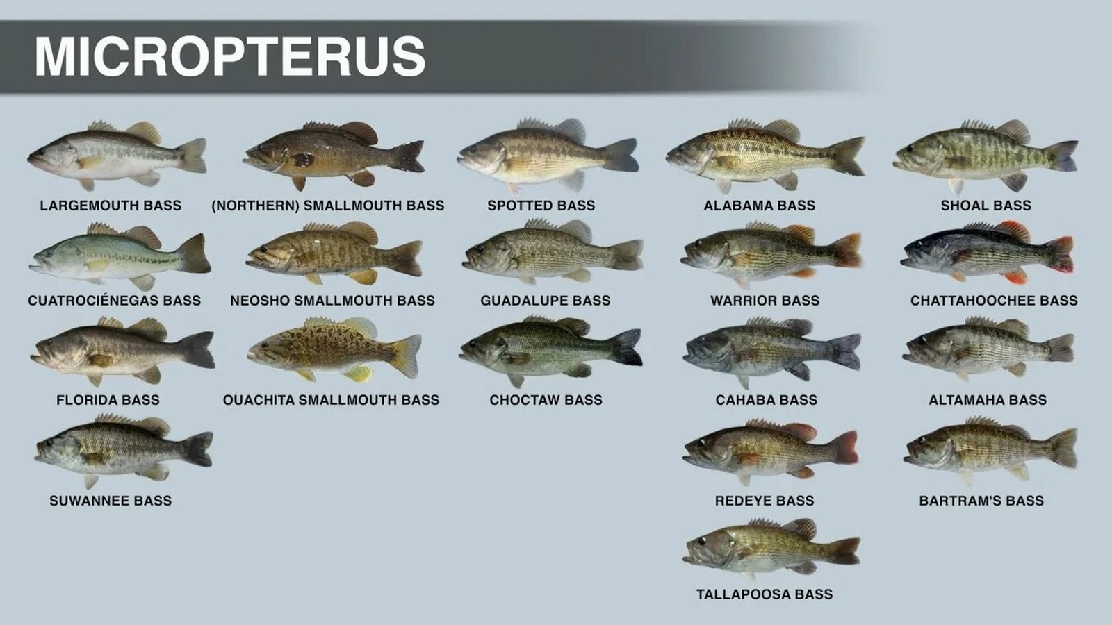 (Micropterus Lacepède, 1802) Род Микроптерусы, Форелевые окуни, Форелеокуни, Чёрные окуни, Чёрные бассы, Genus Micropterus Lacepède, 1802 (Black basses) 8 видов