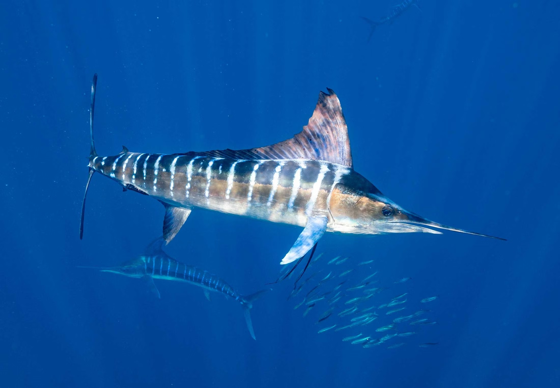 Полосатый марлин, Полосатый копьеносец, Индо-тихоокеанский полосатый марлин, Индо-тихоокеанский полосатый копьеносец, Каджикия аудакс, Кадзикия аудакс, Тетраптурус аудакс (Rus), Striped marlin, Barred marlin, High-finned spearfish, Indo-Pacific striped marlin, Pacific striped marlin, New Zealand marlin, Beakie, Beak, Stripey, Striped swordfish, Nairagi, Makajiki (Eng). |